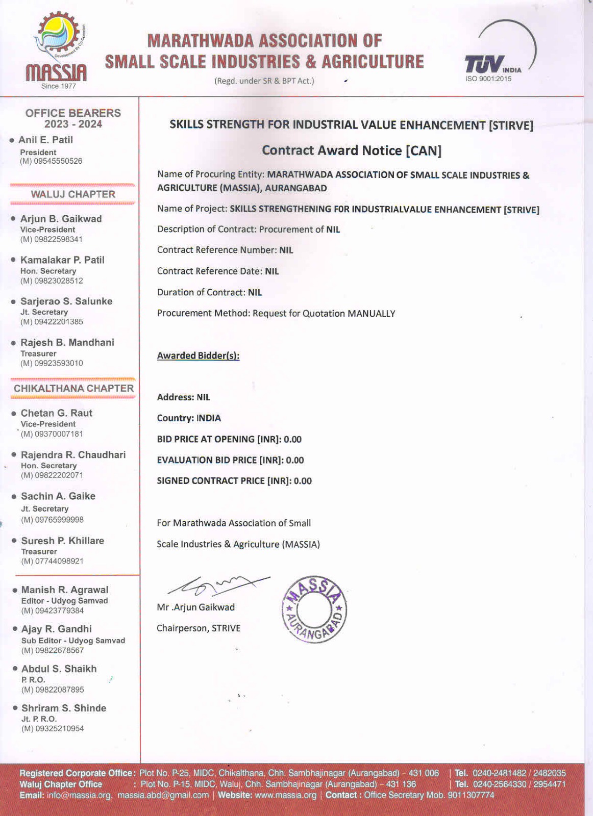 Welcome to Marathwada Association of Small Scale Industries and Agriculture (MASSIA).